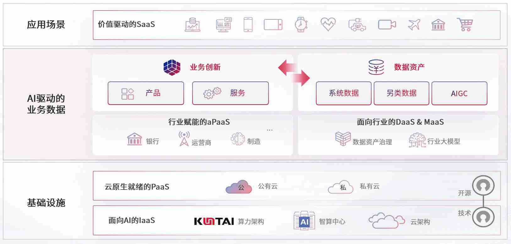 数字时代,,,围绕企业数字化转型的关键要素,,,亚洲必赢数码开创性的提出数云融合战略和技术体系框架,,着力在云原生、、数字原生、、、、AI原生和信创产业上架构产品和服务能力,,为处在不同数字化转型阶段的快消零售、、、、汽车、、、、金融、、医疗、、、政企、、、、教育、、、运营商等行业客户提供泛在的敏捷IT能力和融合的数据驱动能力,,,构建跨界融合创新的数字业务场景和新业务模式,,,助力企业级客户建立面向未来的核心能力和竞争优势,,全面推动社会的数字化、、、智能化转型升级。。。。